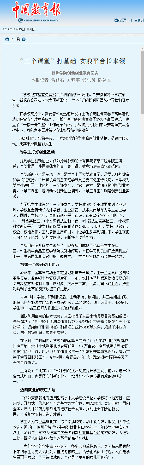 【中国教育报】“三个课堂”打基础 实践平台长本领——365bet真人体育创新创业教育纪实