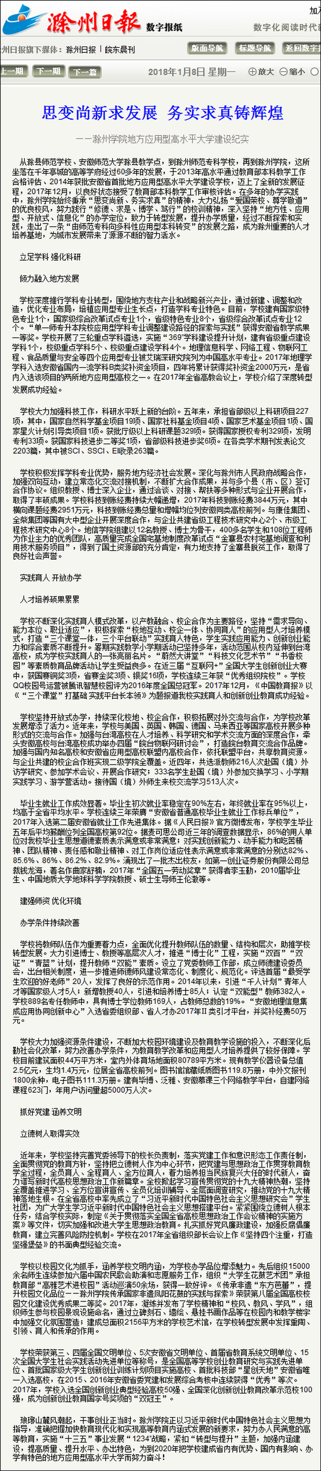 《滁州日报》2018年1月8日第A12版两会特别报道