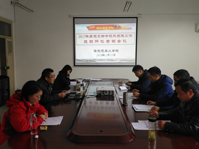 为深入学习宣传贯彻落实党的十九大精神和习近平新时代中国特色社会主义思想,深入贯彻落实新时代党的建设总要求,进一步推动全面从严治党向基层党组织延伸,推进党支部标准化建设工作,1月15日,马克思主义学院召开2017年度党支部书记抓党建工作述职评议考核会议。学院党总支委员、各党支部委员参加考核会,会议由党总支书记、副院长叶高主持。
